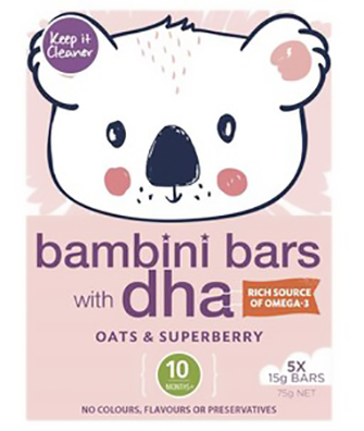 Yet the Cancer Council found that the infant product with the highest amount of sugar – Keep it Cleaner Bambini Bars, Oats and Superberry 10+ months, with a whopping 40.4g per 100g – didn’t state ‘sweetened’ on the packaging.