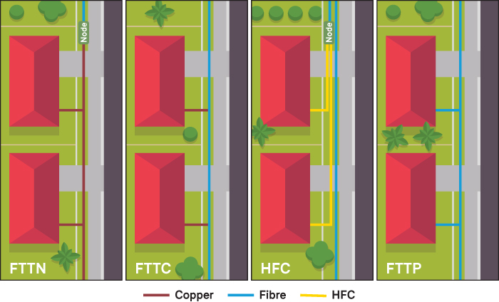Fibre to the Premises (FTTP): A fibre cable connects directly to your house from the street. This is the best option available and provides the fastest download and upload speeds available to consumers, with enough flexibility for possible upgrades in the future.