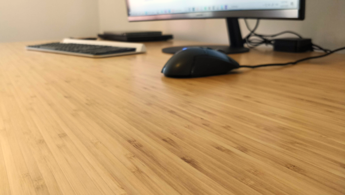 The Omnidesk Pro 2020’s tabletops come in two colours of powder-coated medium-density fibreboard (MDF) or real bamboo (our model), and in varying lengths. All are 76cm deep. You can also opt for a rounded cut-out in the middle to get closer.