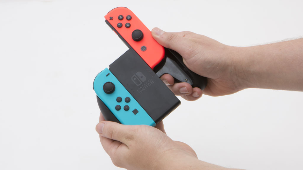 Moving between console and mobile mode is seamless, largely due to the modular controllers, aka the ‘Joy-Cons’. These slide into mounts on the side of the tablet, the idea being that you leave them attached when you’re gaming on-the-go, and take them off at home. Once the Switch is docked, you can pop them off, mount each Joy-Con into the included grip which has a similar design to a PlayStation 4 or Xbox One controller, and use it as a traditional console. When it’s time to go portable again, move the Joy-Cons from the grip to the tablet, and you’re good to go.