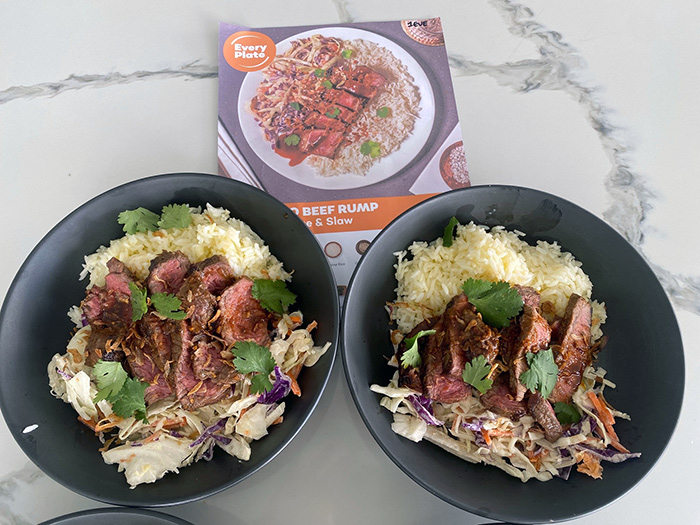 We cooked the Asian BBQ beef rump with garlic rice and slaw recipe from Everyplate.