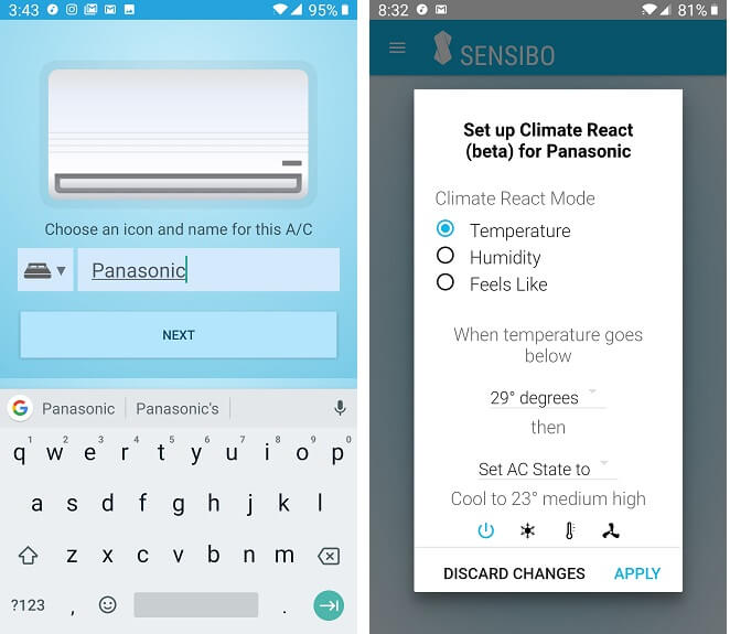 - Name your air conditioner and have your air conditioner remote synchronise with the Sensibo unit.