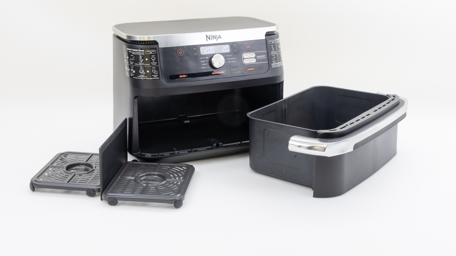 With the divider in place, you can set the two different zones to different times and temperatures, just like a double-drawer air fryer.