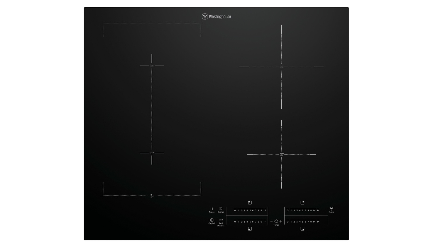 “The issue with this model is the flexi zone is only 18cm wide and the large cooking zone is only 21cm wide. This means that pans with a base larger than 21cm may not work efficiently on this cooktop.”