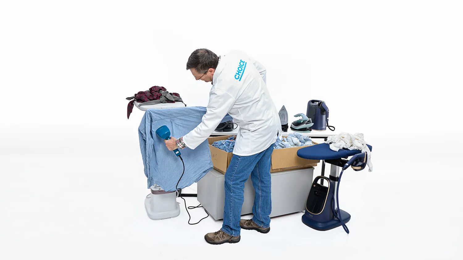 CHOICE’s ironing expert (yep, that’s really a job!) James Thomson has been testing irons, steam stations and garment steamers at CHOICE for eight years, so he literally gets paid to do the ironing.