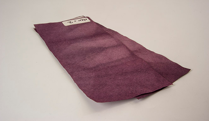 While the two Sard Colour Catcher sheets that emerged were a gratifyingly vibrant shade of purple, this seemed to have very little effect on our white cotton T-shirt (sample B below) which came out a similar shade of lilac as the first, unprotected shirt. A quick office survey revealed that 11 out of 15 people thought the shirt washed with the Sard sheets was a little whiter, but the remaining four thought the shirts were identical.