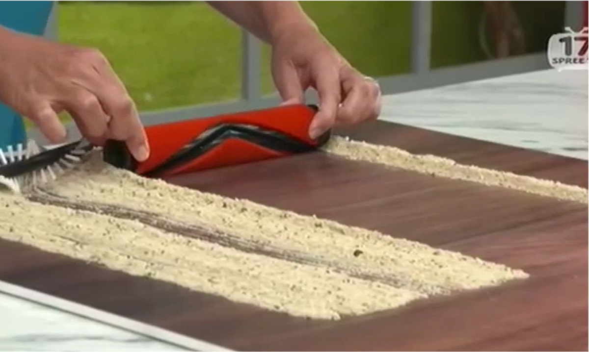 The television ad compares the Invictus’s soft roller head versus other stick vacuums’ brush-style heads in an unrealistic way, by manually hand raking each one across some sand without any spinning or suction action.
