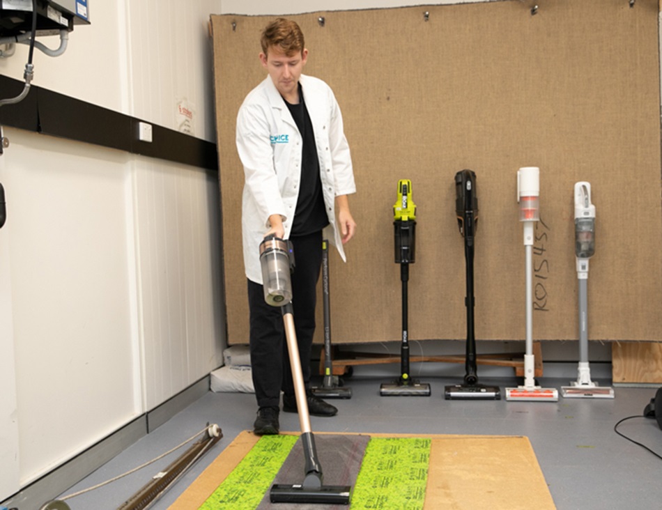 CHOICE stick vacuum expert Adrian Lini testing different models in the CHOICE labs.