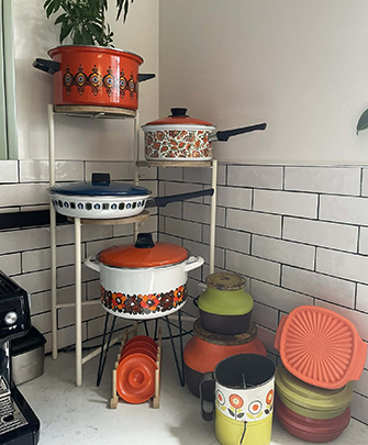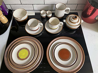 “This mid-century stoneware crockery is from an English brand called Denby. I had bought the green pieces from Facebook Marketplace, but it wasn’t a full set.