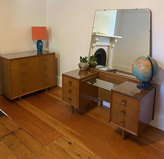 “I bought this Parker bedroom suite (dressing table with mirror, chest of drawers, and wardrobe) for $250 years ago and ended up selling it for $1100. Turns out it’s a 1953 design – probably could have sold it for even more!”